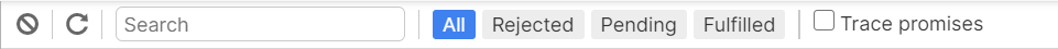 To clear the currently logged Promises, click on the clear icon on the top left of the tab.