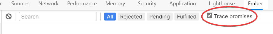 Promises generated by Ember are all labeled by default. You can also label your own RSVP Promises to find them in the Inspector's Promises tab. All RSVP methods can take a label as the final argument.